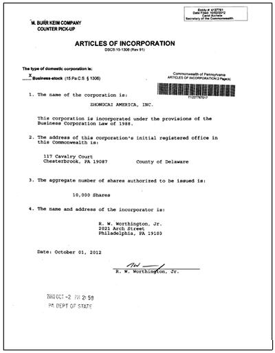 hth官方网页入口讯 在集团董事局领导的大力支持下,经多方努力筹备,hth官方网页入口美国股份有限公司在2012年10月2日正式成立,公司的名称为ZHONGCAI AMERICA, INC.。